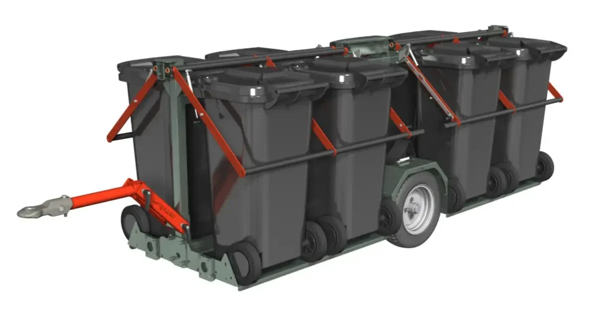 Die BIN BEE 2.2 transportiert zuverlässig zwei 120 l- oder 240 l-Behälter – auch als Mischbeladung. Dank stabiler Aufnahme und einfacher Handhabung ist sie ideal für größere Privatflächen, Betriebs- oder Veranstaltungsgelände geeignet.